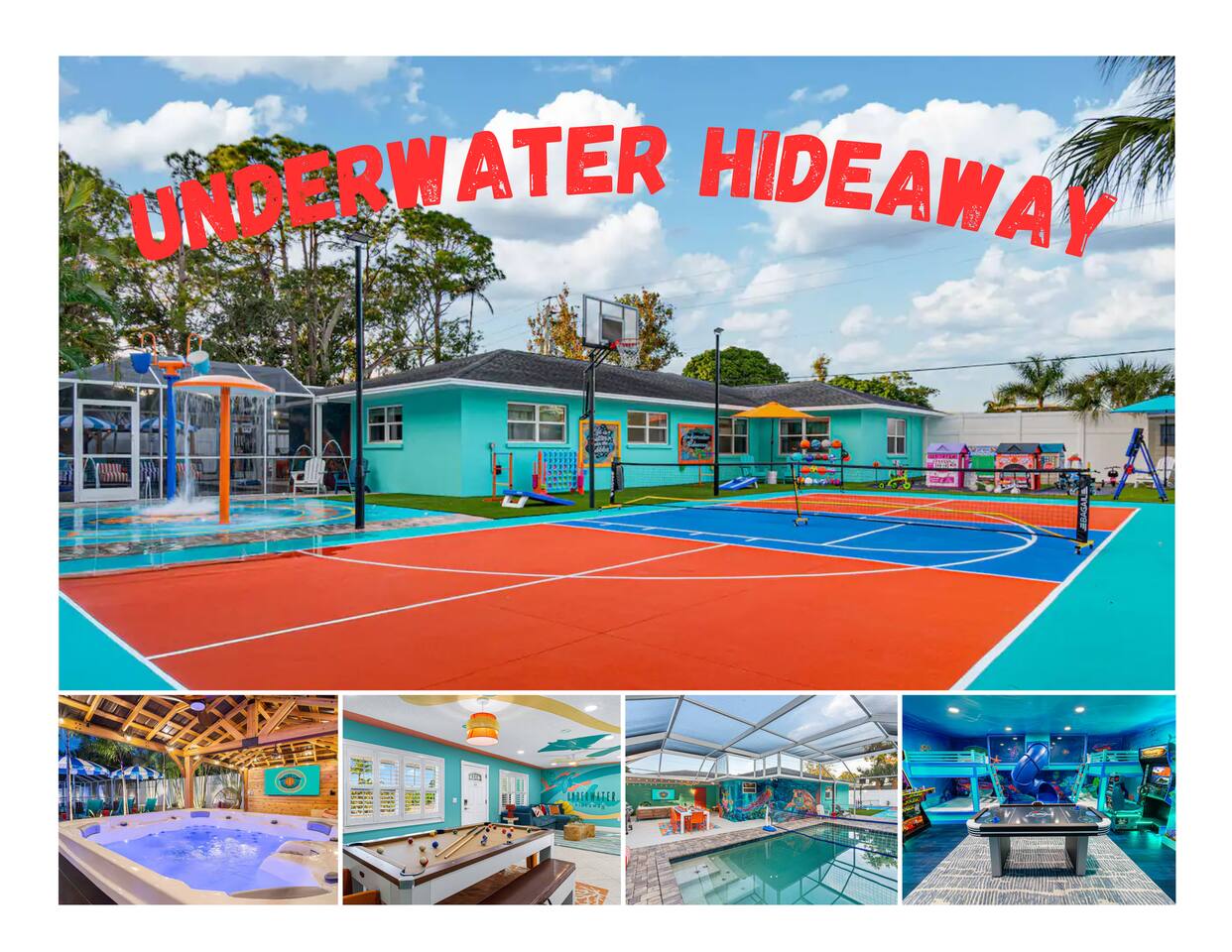 🏡 The Space Welcome to a one-of-a-kind vacation home where luxury meets imagination. You’ll find: 🐢 Spacious underwater-inspired retreat with room for 19 guests (plus 2 infants), featuring vibrant sea-life colors and cozy layouts that make the whole group feel like they’re resting beneath the waves. 🐠 Underwater-themed living room with a custom Joybird sleeper sectional that feels like lounging beneath the sea. 🪸 Fully stocked kitchen with modern appliances, granite countertops, and vibrant ocean-inspired tones — perfect for family meals or brewing morning coffee at the coffee bar. 🐬 Elegantly themed bedrooms that invite guests into a serene retreat — where mellow coral accents, gentle ocean artwork, and soft linens create a calming, restorative atmosphere. 🛏 A bunk-room paradise where black lights reveal glowing sea-life murals wrapping all four walls and the ceiling, while moving water-ripple lights wash the entire space in an underwater shimmer. Add in the deep-blue vinyl plank flooring and sunshine-beam accents, and kids get a below-the-waves sleepover experience they’ll never forget. 🧜♀️ Luxurious primary suite with spa-inspired bathroom and private access to the outdoor oasis. 🌴 Outdoor Oasis Step outside and discover your own piece of paradise: 🐢 Custom gazebo with soothing lighting, 7 person hot tub, cozy furniture, 75" smart TV, and a fire table, making evenings here feel effortlessly relaxing. Adults can savor a cold drink at the bar while the kids play close by — creating a peaceful, family-friendly space everyone loves. 💦One-of-a-kind turtle-themed splash pad — a fun, kid-friendly water zone that keeps the little ones entertained for hours. ⛳ Custom B-R-A-D-E-N-T-O-N light up mini-golf course — perfect for family fun, friendly competition, and unforgettable vacation memories. 🌅 Private heated pool and lounge deck with sun chairs, water games, and screen enclosure. 🎳 Bowling area — a fun, family-friendly lane where guests can challenge each other to lighthearted competition and enjoy hours of laughter. 🏐 Bocce ball court — a relaxed outdoor space designed for slow-paced fun, perfect for all ages to play, chat, and unwind together. 🏀 Custom Florida-themed pickleball & basketball court — featuring vibrant turquoise, orange, and blue surf-inspired colors that bring a splash of Sunshine State energy to every game. 🚗 Kids’ tricycle & car track — an imaginative mini-town complete with a themed coffee shop, fire station, gas station & car wash, and ice cream shop, giving kids endless opportunities for creative play. 🌿 Turf yard-games zone — a spacious, easy-to-play-on area set up for Connect 4, ladder ball, cornhole, 4-person volleyball, spikeball, and more, offering nonstop entertainment for all ages. ✏️ Custom chalk boards — a fun and colorful space where kids can draw, dream, and express their creativity throughout their stay. 🍹 Outdoor kitchen and grill area for cookouts. Whether it’s a morning dip, sunset dinner, or stargazing in the hot tub, the Underwater Hideaway brings the magic of the ocean right to your backyard. 📍 Location The home is perfectly situated in beautiful Bradenton, Florida, just minutes from: 🏖 Anna Maria Island – world-class beaches and turquoise waters (10 min) 🌮 Downtown Bradenton Riverwalk – dining, live music, and waterfront fun (5 min) 🧭 Cortez Village & Robinson Preserve – nature trails, kayaking, and Gulf views (15 min) ⚾ IMG Academy – ideal for visiting families (15 min) 🐊 Sarasota & St. Armands Circle – boutique shopping and coastal charm (25 min) ✨ Why Guests Love It ⭐ Unique, immersive “underwater adventure” theme — unforgettable for kids and families ⭐ 5-star quality and professional design ⭐ Private pool, gazebo, splash pad, tricycle track, underwater bunkroom, and mini-golf for endless entertainment ⭐ Fast Wi-Fi and Smart TVs throughout ⭐ Thoughtful touches, from glowing coral decor to sea-life murals 🐚 Perfect For Families, couples, and groups looking for a Florida getaway that’s fun, luxurious, and totally unique. The Underwater Hideaway is more than a place to stay — it’s an experience your guests will talk about long after check-out. 🌊 Book Your Stay at the Underwater Hideaway Make your next vacation magical — swim with turtles, nap under glowing ripples, and explore Bradenton’s coastal treasures. → Dive in and book your stay today before your dates drift away!